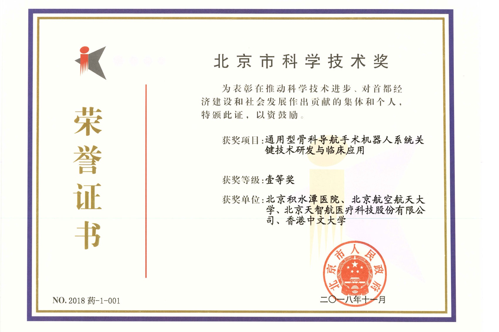 2018-榮譽證書-北京市科學技術(shù)一等獎